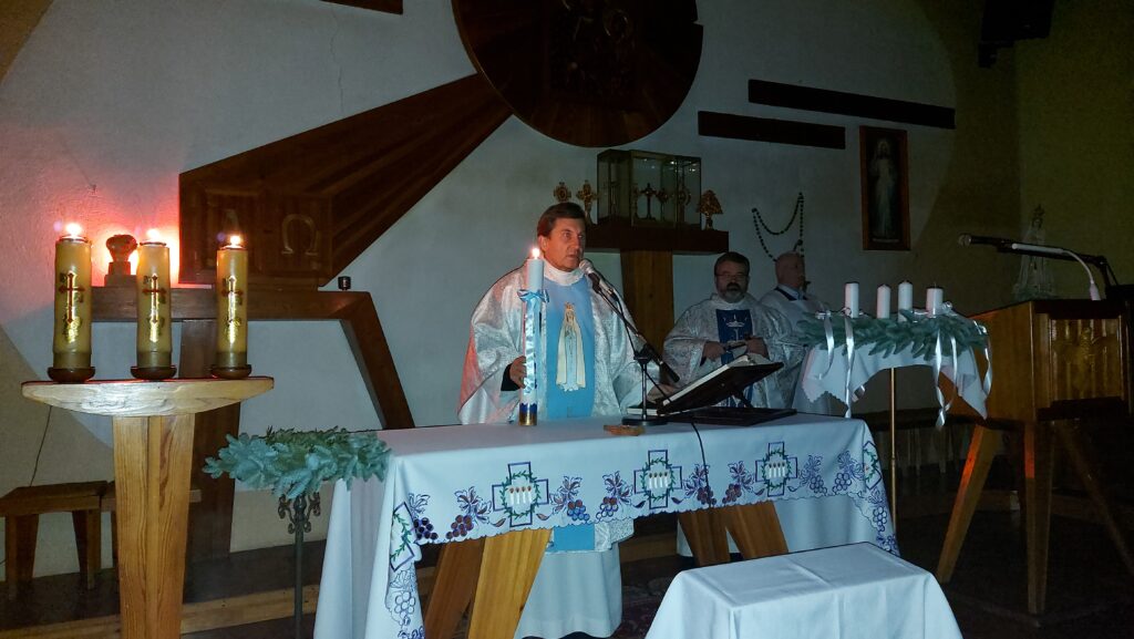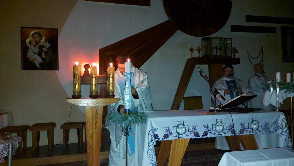 W czwartek 30 października 2025 r. Mszą św. o godz. 17.00 w kaplicy parafialnej przy ulicy K.K. Baczyńskiego 14 w Szczawnie-Zdroju rozpoczęła się niecodzienna uroczystośc. Młodzież z naszej parafii otrzymała z rąk J.E Bpa Marka Mendyka Sakrament Bierzmowania. Po niej procesyjnie ze świecami przeszliśmy do budowanego kościoła, gdzie Ordynariusz Świdnicki dokonał umieszczenia Kamienia Węgielnego i Aktu Erekcyjnego budowy kościoła a następnie poświęcił Kaplicę.